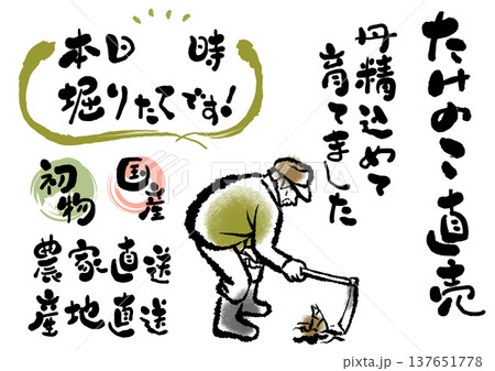 たけのこ生産者と産地の安心感を伝える、ぬくもりある筆文字とイラストセット
