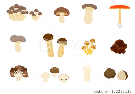 色々なキノコのイラストセット エノキ・エリンギ・シメジ・舞茸・松茸・なめこ・椎茸