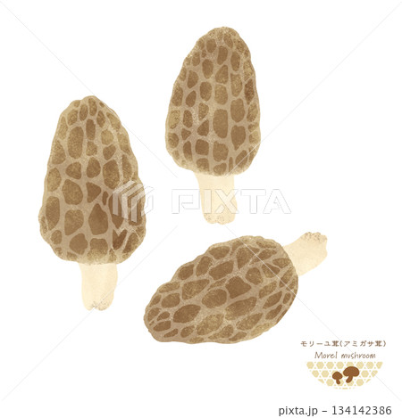 世界のきのこ<モリーユ茸・アミガサ茸の水彩イラスト>