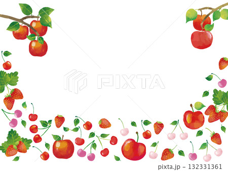 水彩風 かわいい果物(サクランボ・イチゴ・リンゴ)のフレーム2