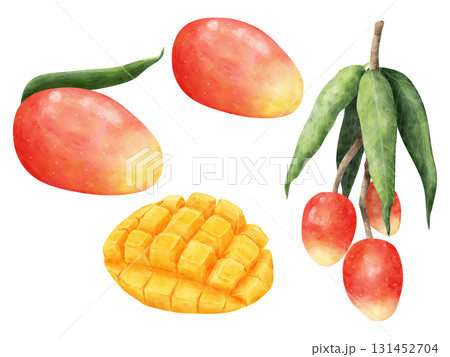 水彩風のマンゴーイラスト素材 明るく爽やかなデザイン トロピカルでナチュラルなフルーツ素材