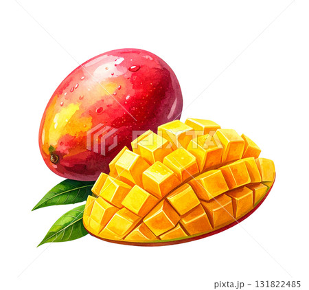 マンゴーのリアルタッチな背景透過された切り抜きイラスト