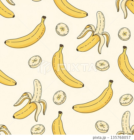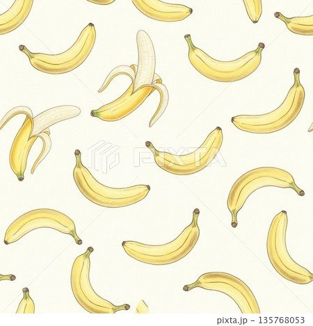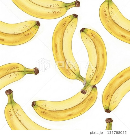 シンプルなバナナ柄 手描き水彩イラストの果物柄