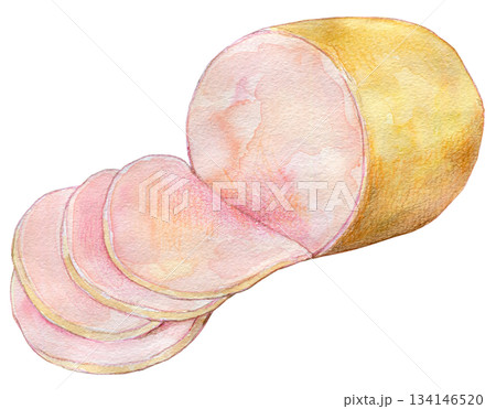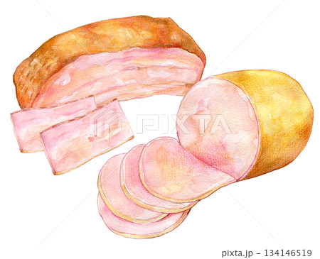 水彩イラスト 手書きイラスト 加工食品 ハムやベーコン