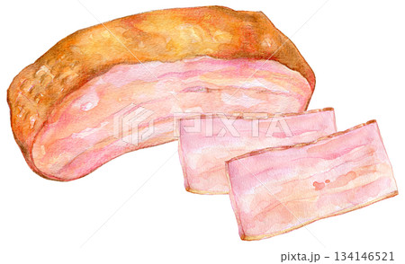 美味しそうなベーコンの手描き水彩イラスト