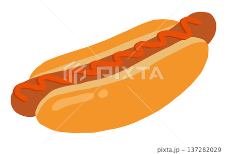 ケチャップのついたフランクフルトのイラスト(水彩風)