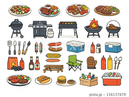 バーベキューのイラストセット