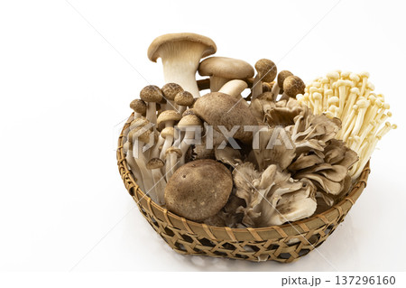 ざるに盛った各種きのこ