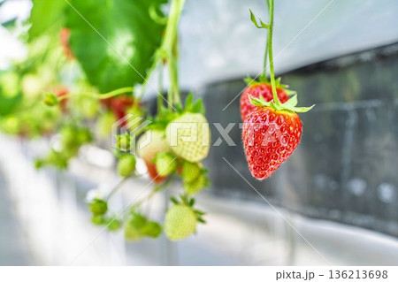 赤く実ったイチゴの果実 いちご狩り 宮城県山元町