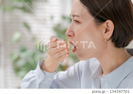 ビューティー オーラルケア 歯ブラシを持っている女性の口元