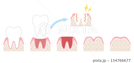 抜歯後の回復過程とドライソケットの図解 文字なし