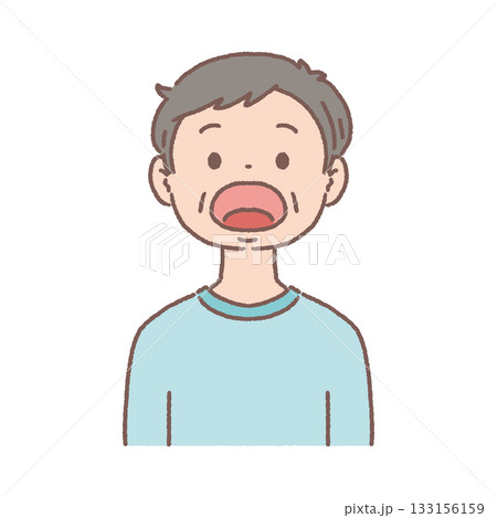 大きな口を開けた混合歯列期の子供の歯のイラスト