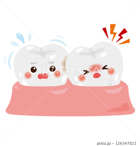 健康でキレイな歯と炎症が起きた不健康な歯のイラストセット
