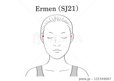 耳門(じもん)のツボのイラスト素材(英語表記)