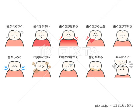 歯周病や歯槽膿漏のイメージ、かわいい歯のイラストセット