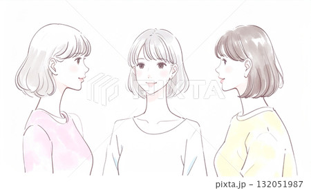 水彩画・手描き風の女性・女の子のイラスト素材セット