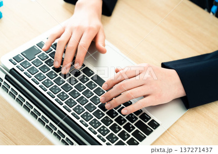 パソコンを操作するビジネスウーマンの手元