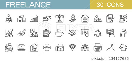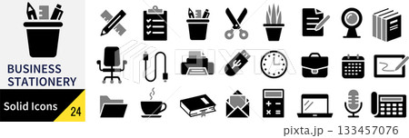 ビジネス アイコン ベクター シンプル 複数 パソコン スマホ 出張 プリンター グラフ 社員証