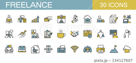 在宅勤務・リモートワークに関するアイコンセット カラー
