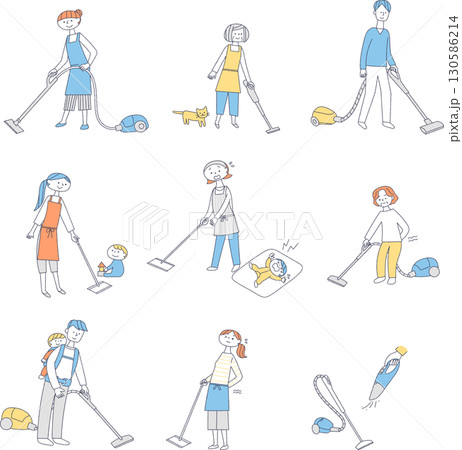 掃除 家族 親子 子供 掃除道具 イラスト セット
