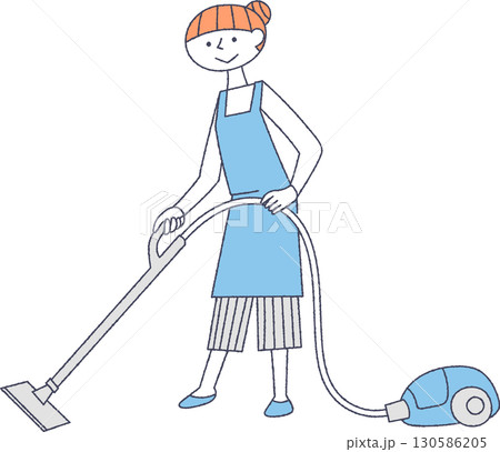 女性 掃除 コードレス掃除機 手描き イラスト 素材