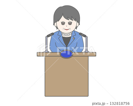 女性政治家が会見しているイラスト(にこにこ)