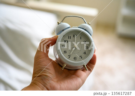 シンプルな目覚まし時計6時15分 アラームが鳴っている様子 水彩風手描きイラスト