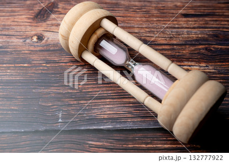 木製のフレームに収まったシンプルな砂時計のイラスト