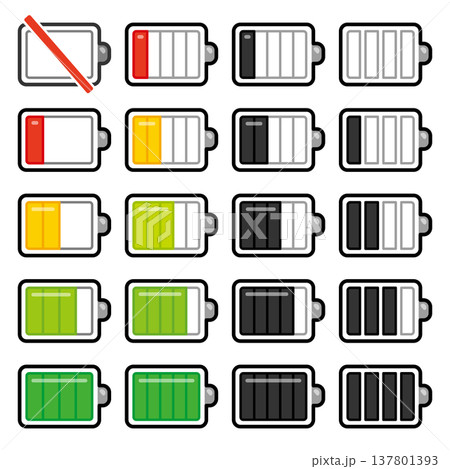 バッテリーの充電残量アイコンイラストセット