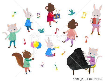 ピアノと可愛い動物のイラスト