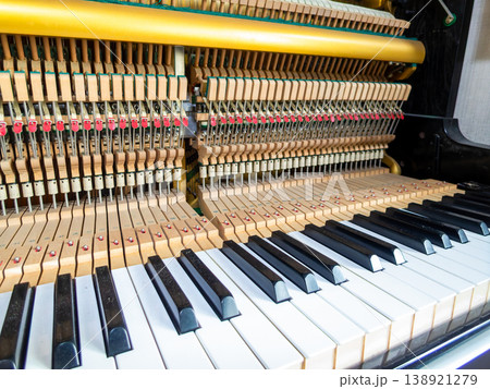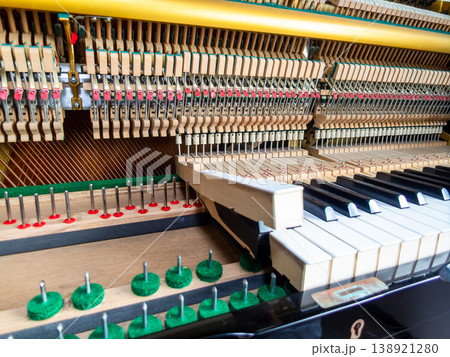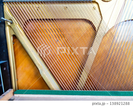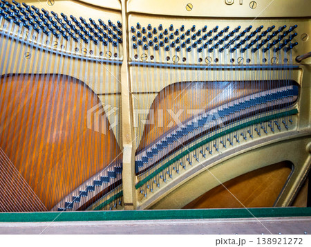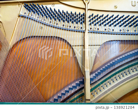 アップライトピアノの分解整然と張られた弦