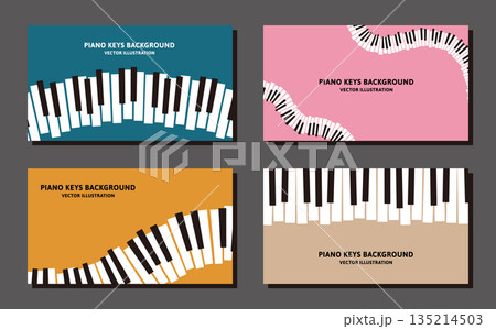 16:9の背景素材、4枚セット。ピアノの鍵盤のレトロなデザインのベクターイラストデータ