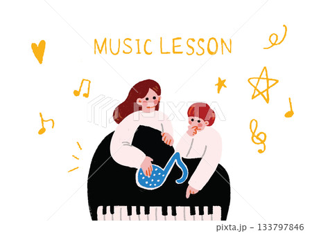 ピアノ 教室 子ども イラスト バナー 背景 正方形 音符
