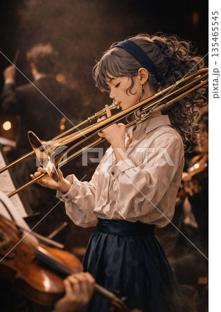 トロンボーンを吹く女の子
