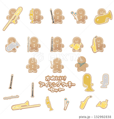 楽器を持ったジンジャーブレッドマン/絵本風クリスマスアイシングクッキーイラストセット