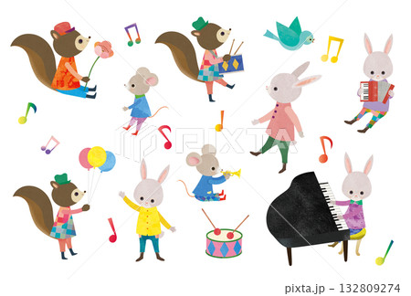 楽器を演奏する動物たち_太鼓 鍵盤ハーモニカ マラカス トランペット