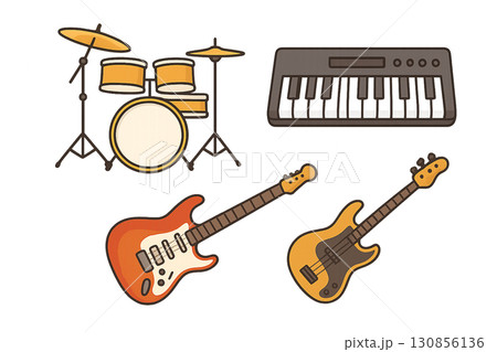 楽器イラストセット(ドラム、キーボード、ギター、ベース)
