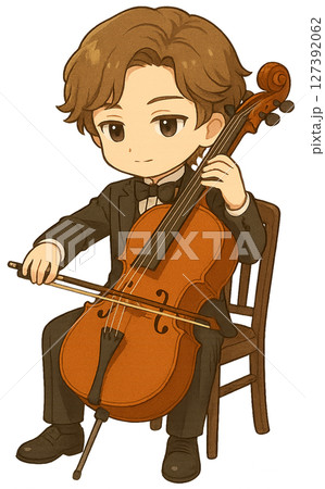 チェロを弾くタキシードの男の子
