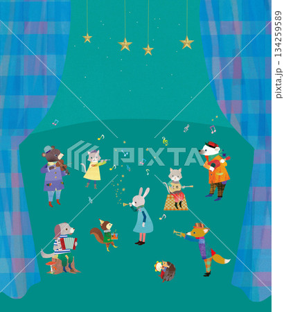 水彩アナログ風 ピアノ ヴァイオリン チェロ ヴィオラ 演奏 発表会 イラスト