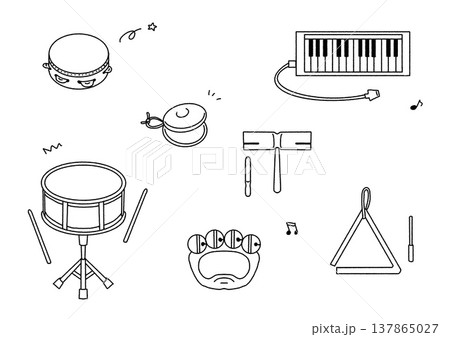 小学校で使う色々な楽器の線画のイラスト