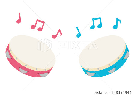 タンバリンのイラスト(ピンクと水色・音符付き)