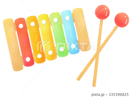 木琴の水彩イラスト・保育や音楽教育に使える木製楽器素材