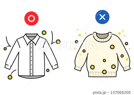 花粉が付着しやすい服、しにくい服を説明したイラスト