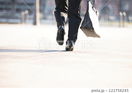 オフィス街を走る若い女性の足元