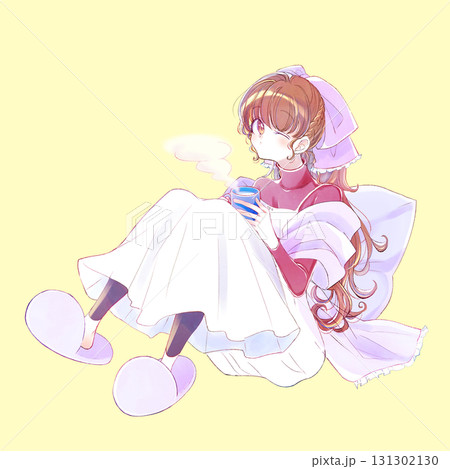 温かい飲み物が入ったマグカップを持つ女性 メルヘン 秋 冬