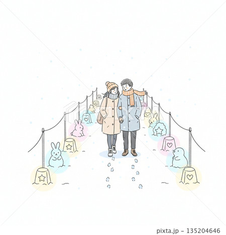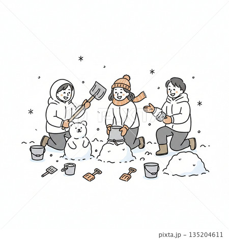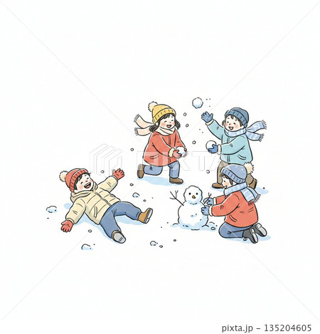 冬あそびシリーズ:雪だるまと女の子 かわいいイラスト