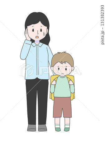 入学式でランドセルを背負こどもたち(小学1年生)のベクターイラストセット(喜怒哀楽と不安)
