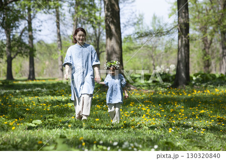 自然の中で遊ぶ親子