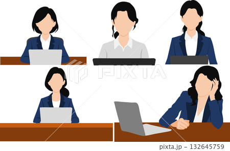 イラスト素材:スーツ・立ち姿・女性(ボブヘア)