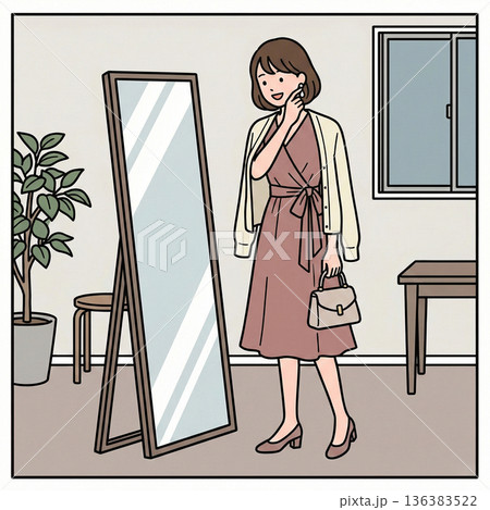 微笑む大人の女性ファッションイラスト